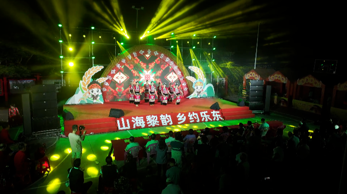 晚会现场,歌曲演唱、杂技表演、少量民族服饰走秀等精彩节目轮流演出,生动出现乐东村庄复兴的丰硕成果。